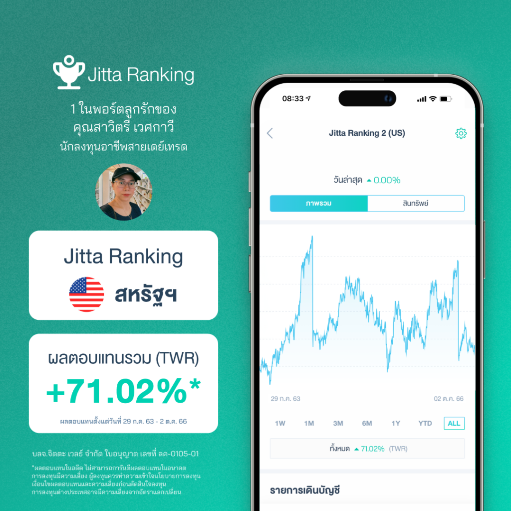 หลังจากนั้นคุณสาวิตรีก็เปิดพอร์ตกับ Jitta Wealth มาเรื่อยๆ ไม่ว่าจะเป็น Thematic Jitta Ranking หุ้นจีนและเวียดนาม หุ้นเทคฯ สหรัฐฯ