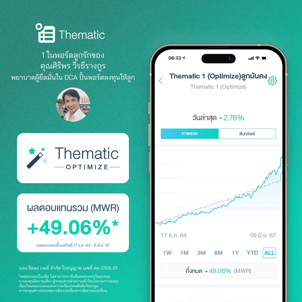“ การ DCA อย่างมีระบบระเบียบแล้วก็มีความสม่ำเสมอ เป็นกุญแจสำคัญในการทำให้พอร์ตเติบโต ด้วย Thematic Optimize +49.06% ”